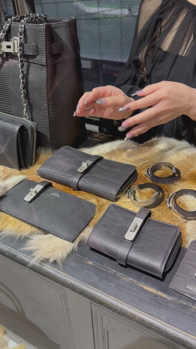 ・フラットロングウォレット スリザード型押し -vintage ブラック- (MUL027-225039)